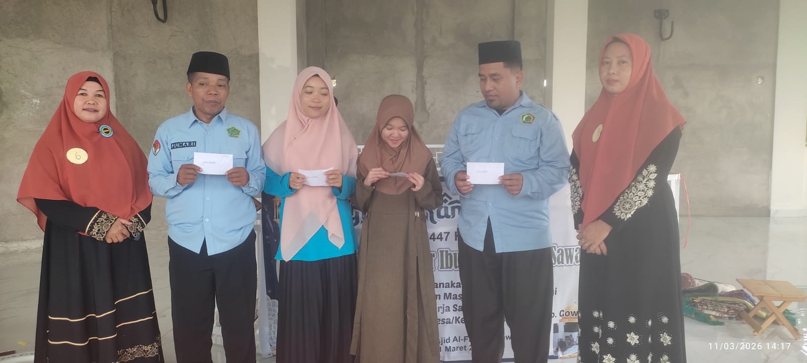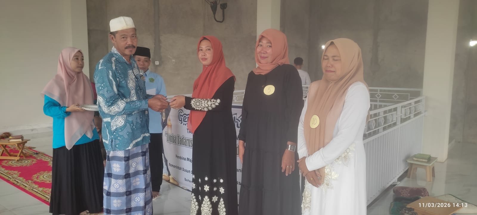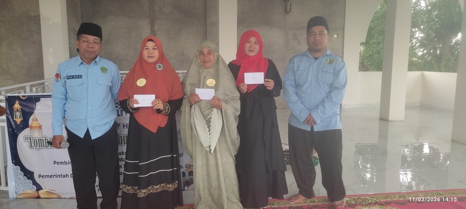 Lomba Tadarus Al-Qur’antar ditutup oleh Muktadir Khair,S.Pd I mewakili KUA kecamatan Pattallssang dilanjutkan penyerahan hadiah bagi pemenang lomba “Gema Ramadhan 1447 H 2026 M Lomba Tadarus Al-Qur’an Antar Ibu Ibu Sedusun Sawagi di laksanakan oleh Pembina Majelis Taklim Masjid Al-Fathani Sawagi Bekerja Sama Pemerintah Setempat,Rabu 11/03/2026/14.03(NUR)