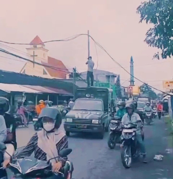 Dengan langkah tersebut, ia kemudian mengangkat dan mengamankan kabel agar tidak lagi menghalangi kendaraan yang melintas, sambil menunggu petugas dari PLN datang untuk melakukan penanganan lebih lanjut.